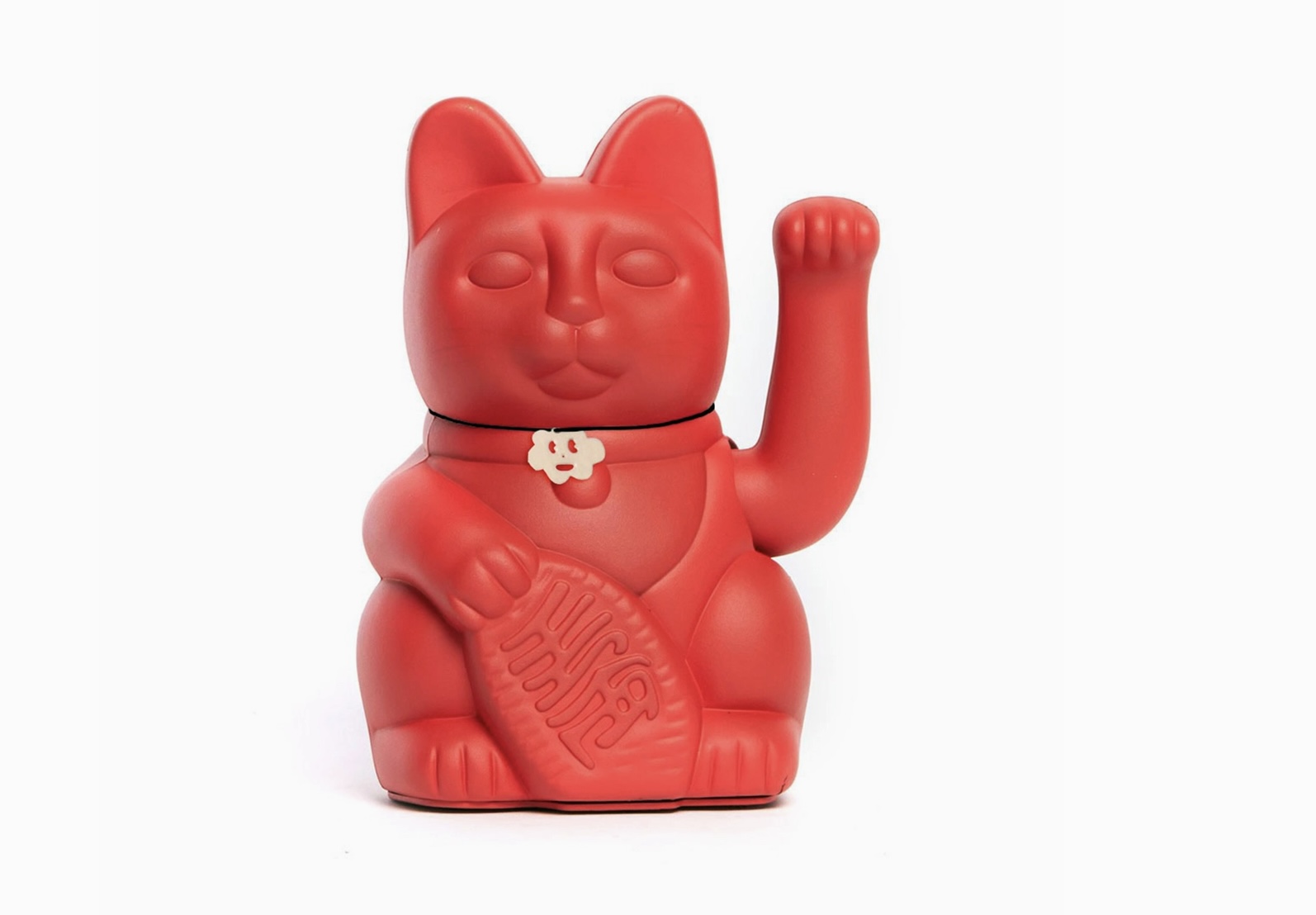 Haal deze rode Luckycat in huis en plaats ze naar de deur zodat ze met haar pootje geluk kan uitnodigen om binnen te komen. Elke kleur staat voor een ander geluk. Rood trekt liefde aan en zorgt dat je hart sneller gaat kloppen.