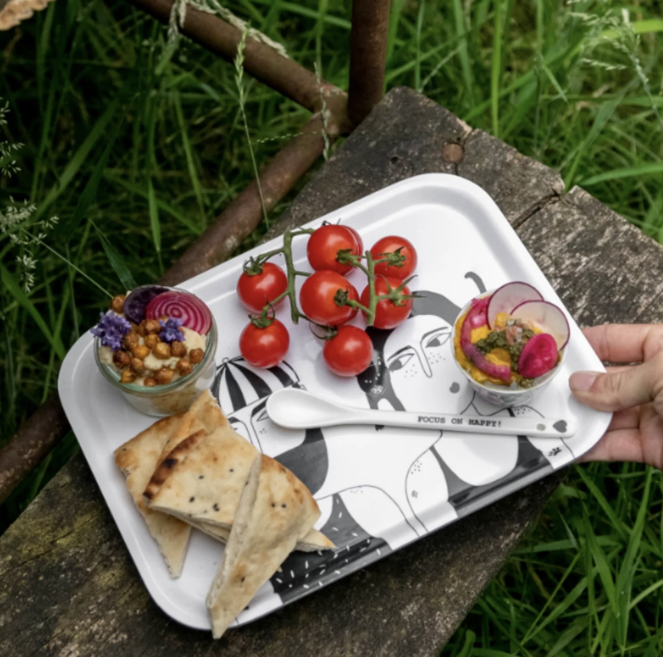 Briljante schotel in hout met illustratie van helen b