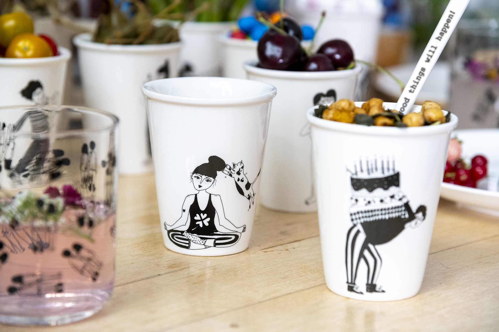De rode draad doorheen de gehele collectie zijn de creaties met figuren en quotes in de typische tekenstijl van Helen Blanchaert die je dag kunnen opvrolijken. Of dat op porselein, textiel of papier is heeft geen belang. Zolang het bruikbaar is in je dagelijkse leven en een glimlach tovert.