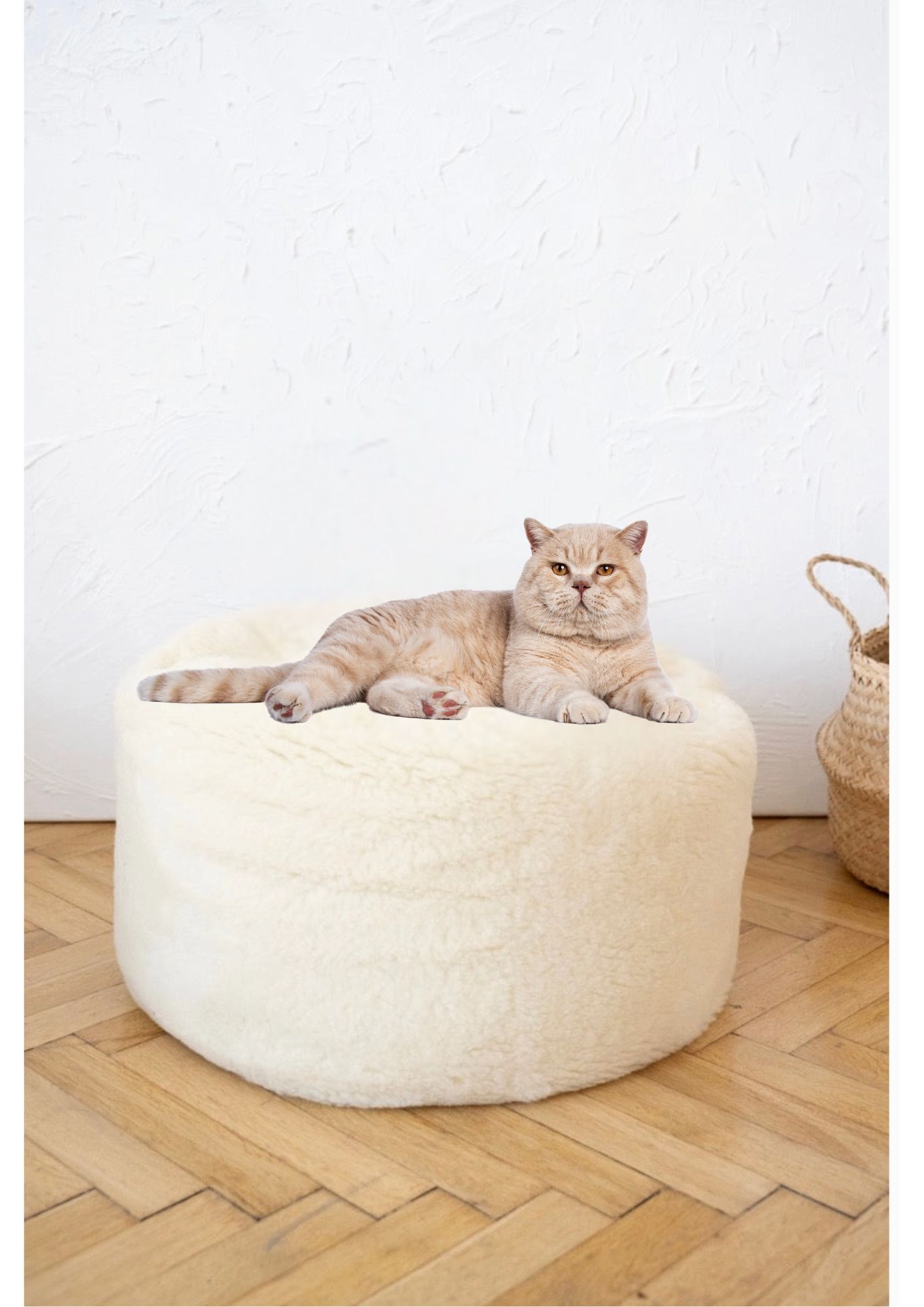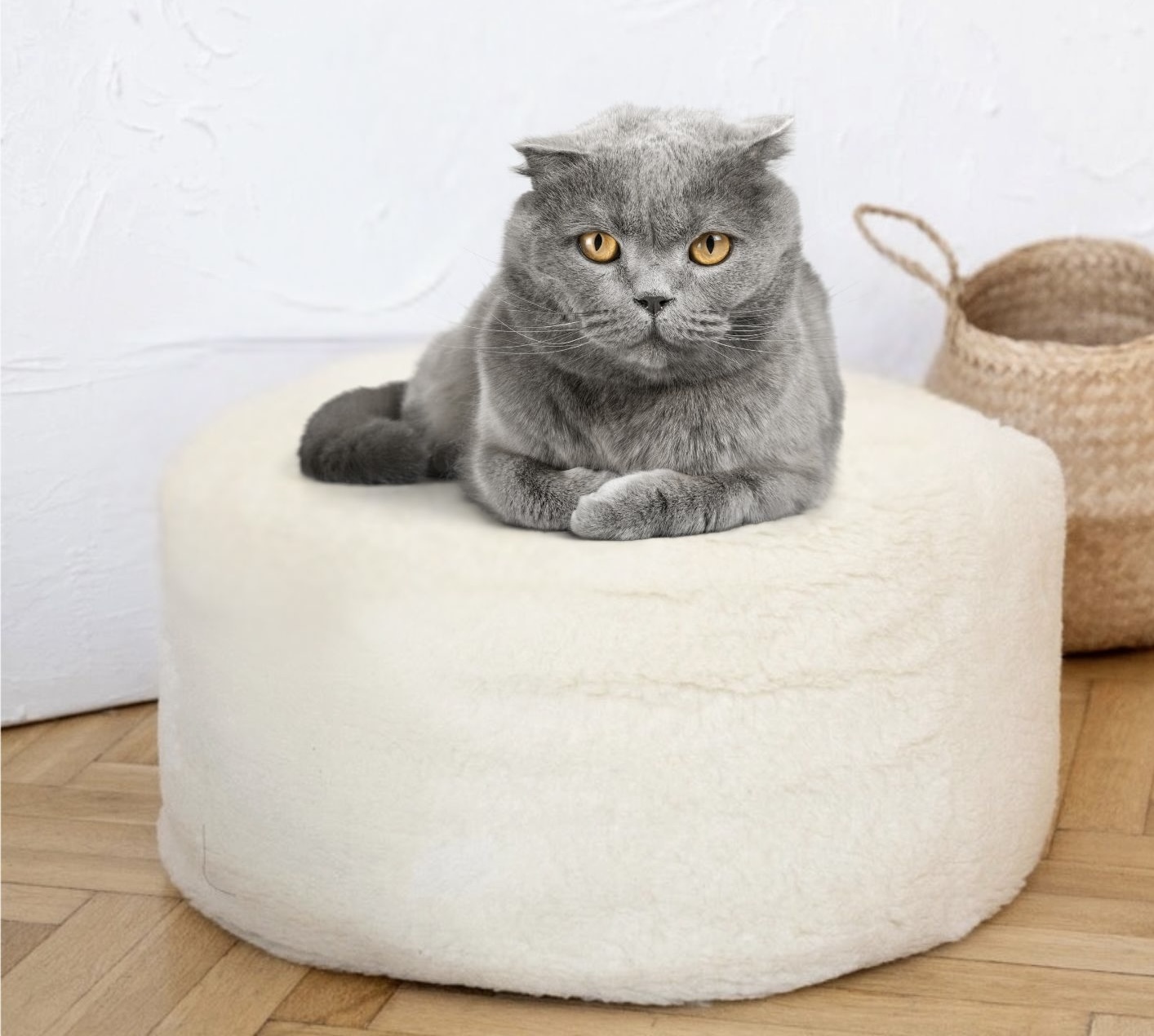 Dit ovalen poefje van de zachtste, natuurlijke wol biedt niet alleen warmte, maar voegt ook een gezellige sfeer toe aan je interieur. Een musthave voor elke kat die houdt van comfort en voor elke kattenliefhebber die houdt van stijl.