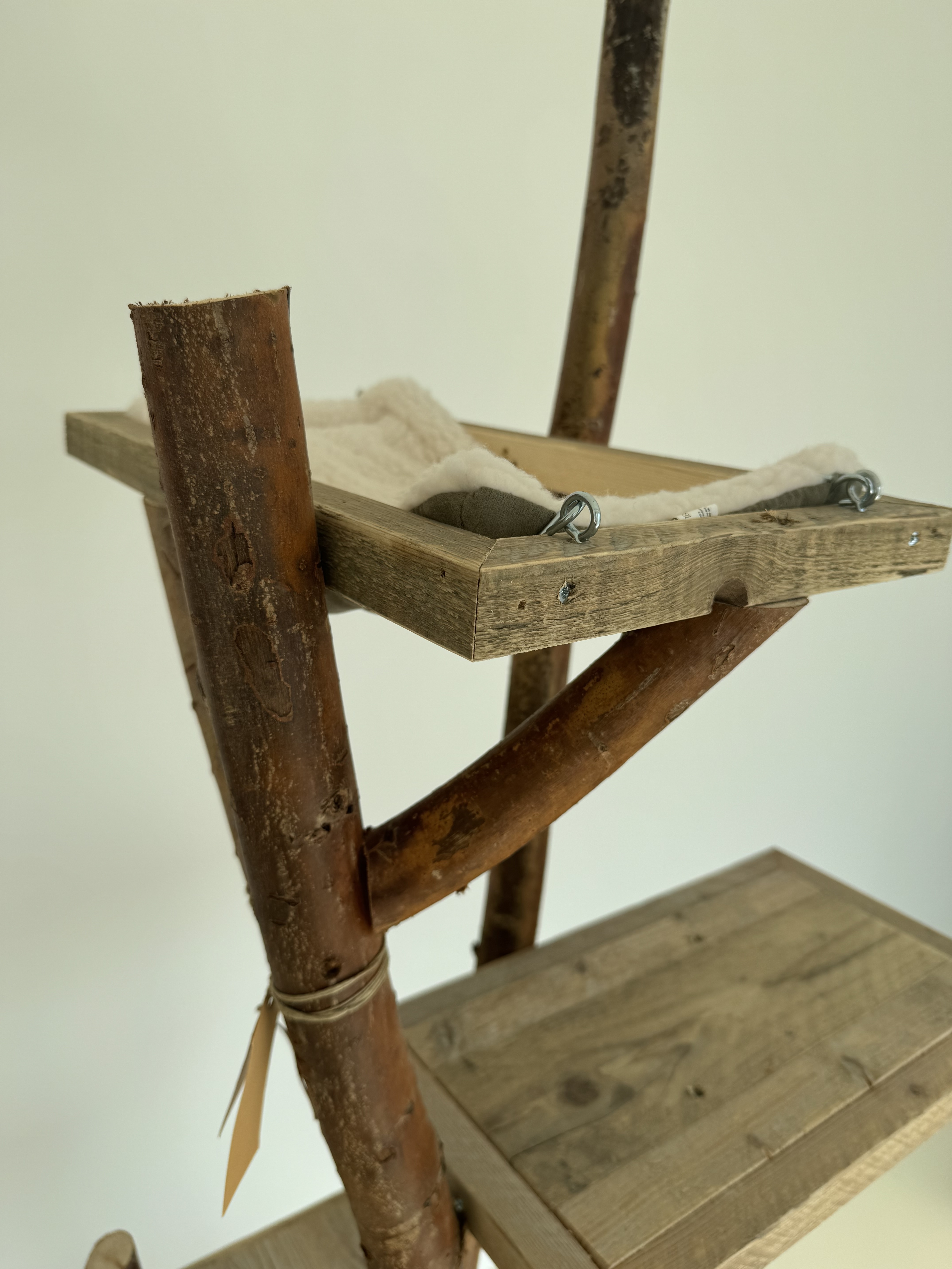 Bij handgemaakte producten kunnen de afmetingen variëren omdat elke klimboom uniek is en met zorg en vakmanschap is vervaardigd. Dit draagt bij aan de charme en authenticiteit van de klimboom.