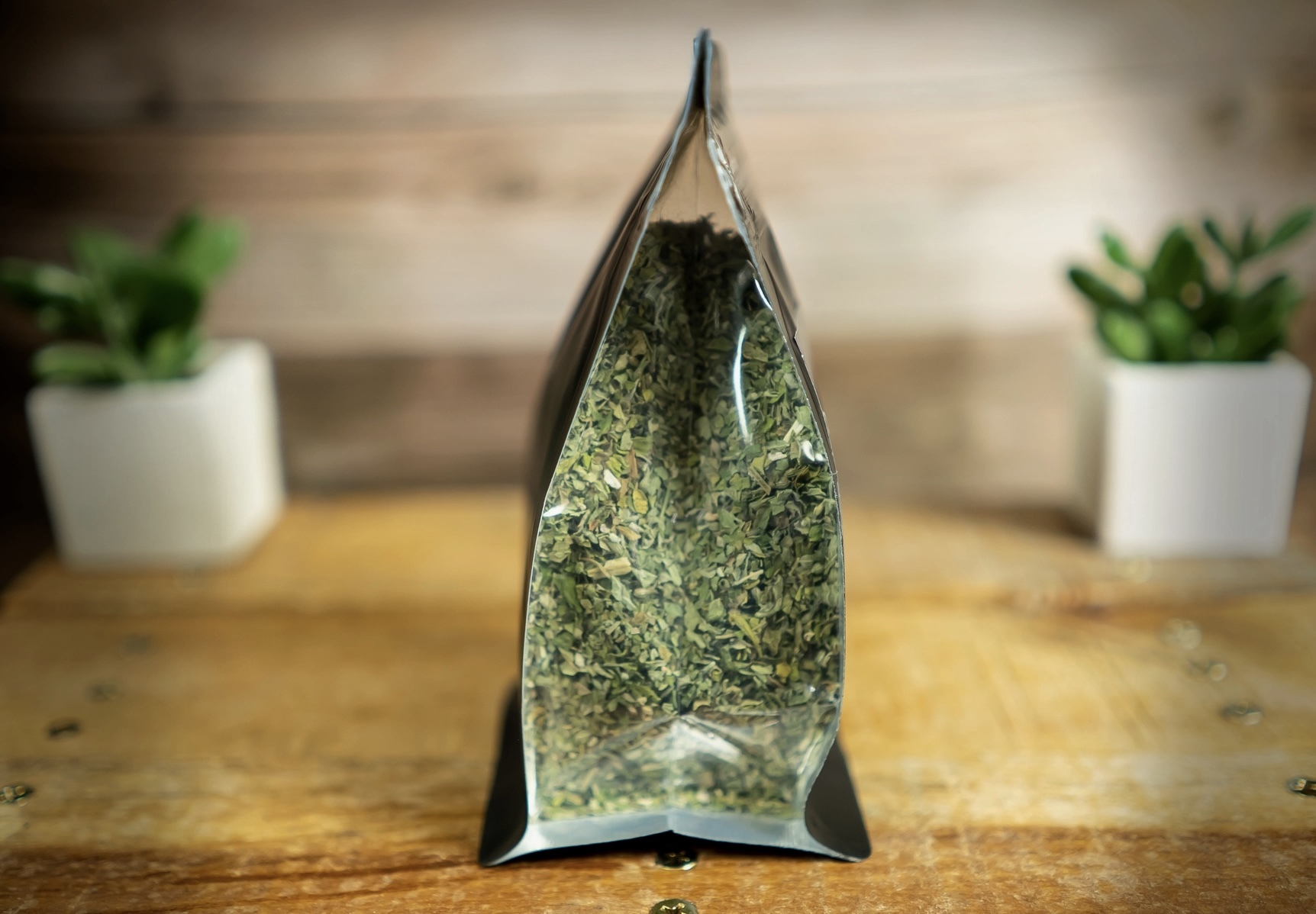 Een gemalen mengsel van alleen de bladeren en bloemen van kattenkruid.