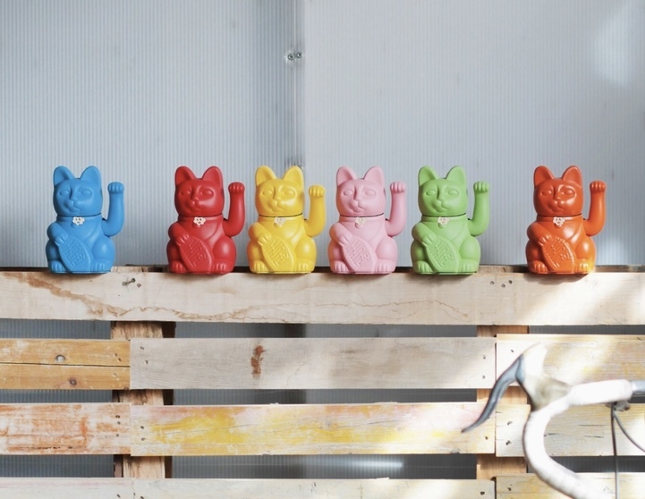 Diminuto Cielo is een ludieke en kleurrijke interpretatie van de kat Maneki-Neko, die erg populair is in de Japanse cultuur en naar verluidt veel geluk brengt aan de eigenaar