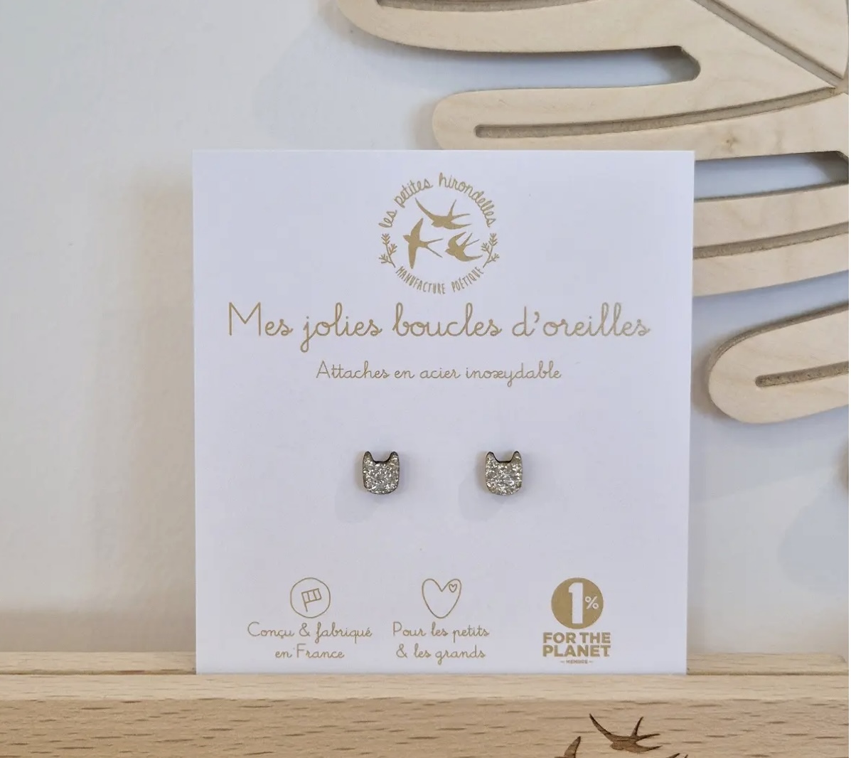 - houten oorbellen in de vorm van een kat