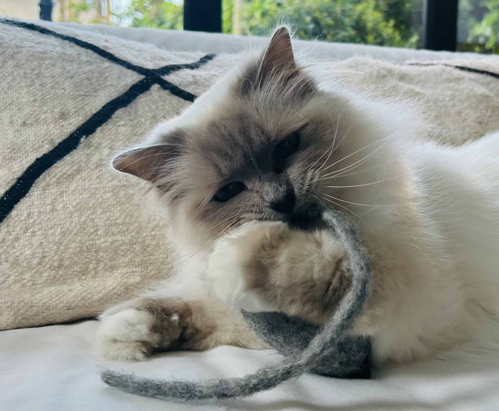Verwen je kat met deze grote muis van pure wol. Katten zijn dol op de zachte textuur en de natuurlijke geur van wol.