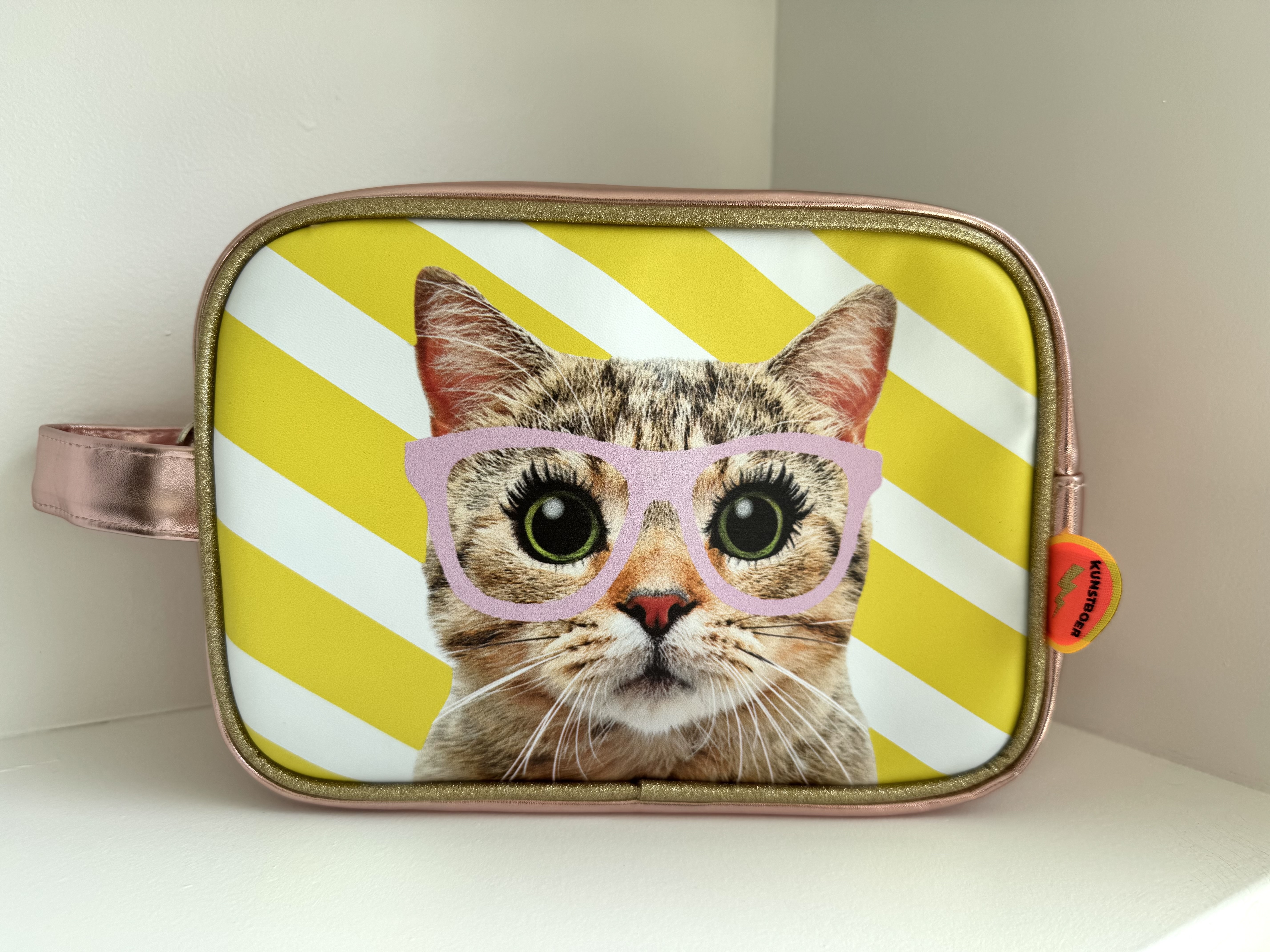Deze schattige toilettas met vrolijke fantasieprint is perfect om mee te nemen op reis of voor een dagje weg. Makkelijk schoon te maken, zowel van buiten als van binnen.