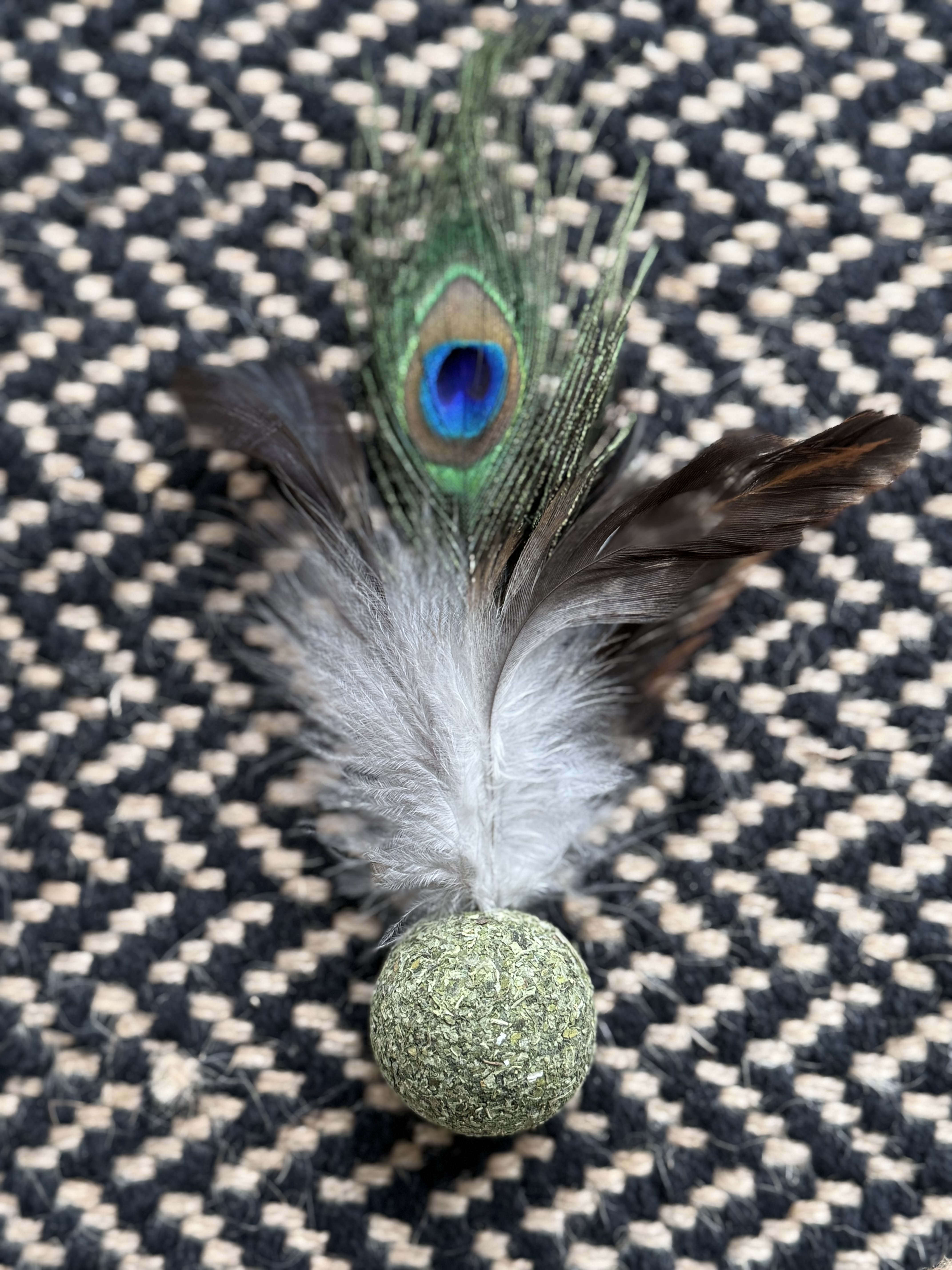 Verwen je kat met dit betoverende speeltje en zie hoe ze de bal met plezier najaagt. Met zorg gemaakt van volledig natuurlijke materialen, waaronder premium kattenkruid, om jouw kat geprikkeld te houden.