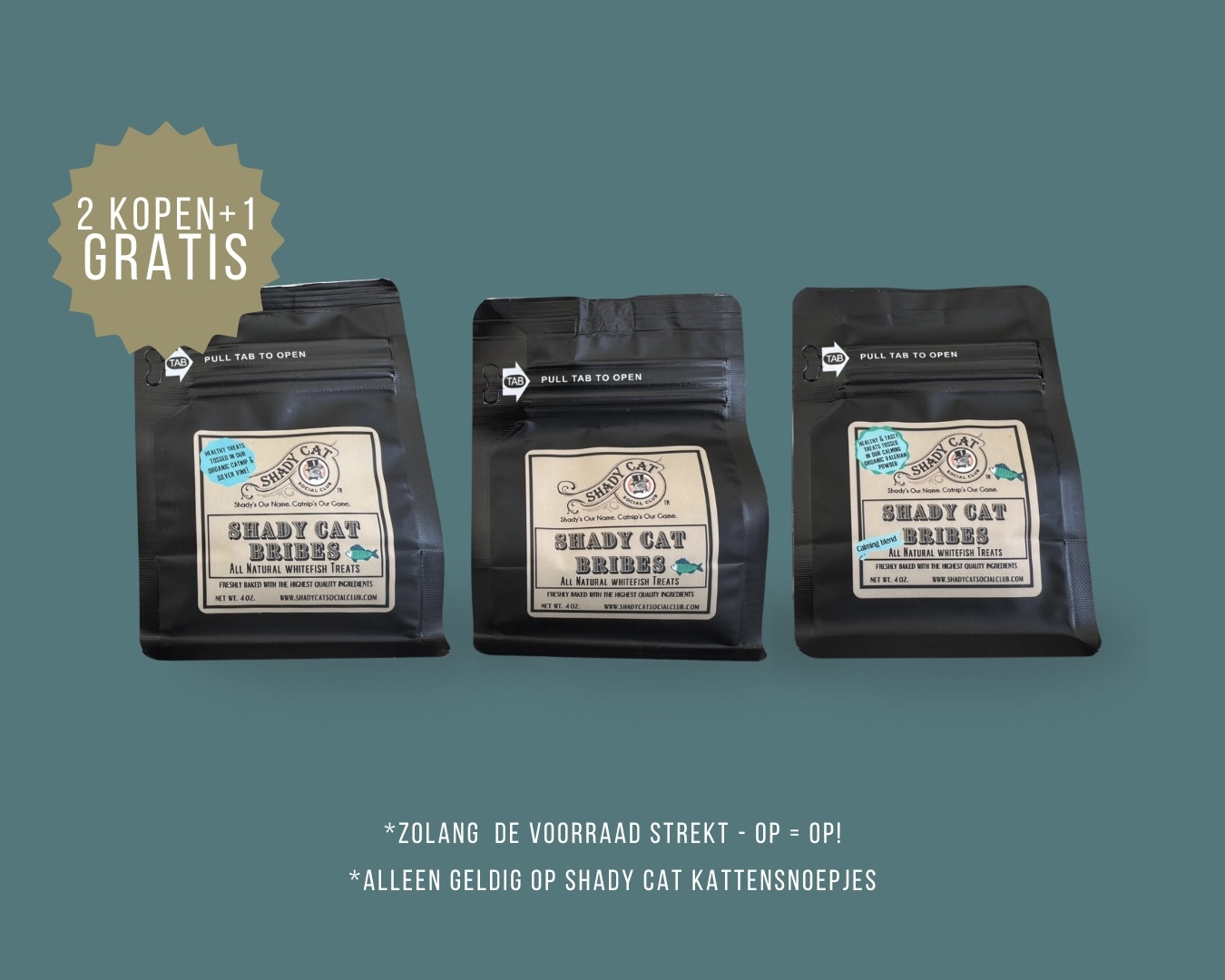 Verwen je kat vandaag nog en profiteer van onze actie: 2 KOPEN + 1 GRATIS! Dat betekent 3 smakelijke traktaties voor je fluffy friend(s) voor de prijs van 2.