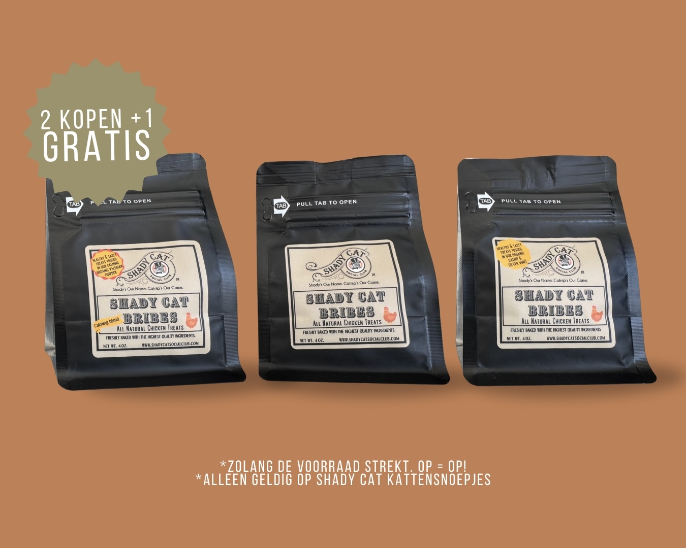 Verwen je kat vandaag nog en profiteer van onze actie 2 KOPEN + 1 GRATIS! Dat betekent 3 smakelijke traktaties voor je fluffy friend(s) voor de prijs van 2