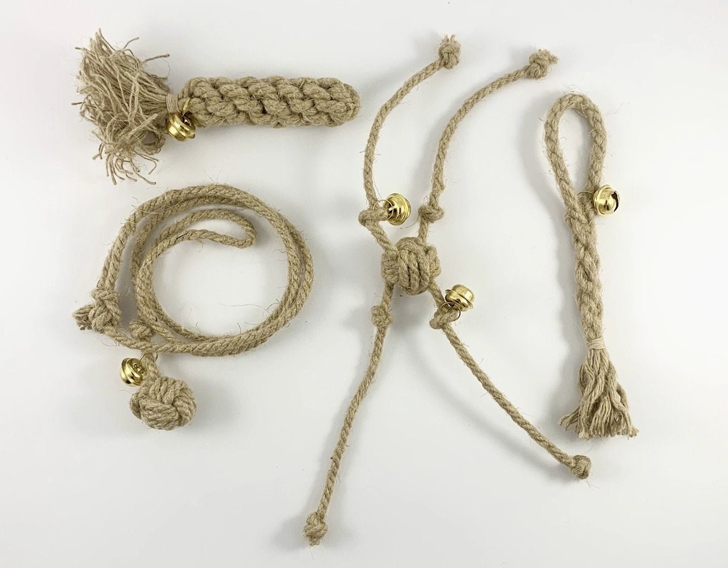 Katten houden echt van de geur van onbehandelde hennepvezels. Het speelgoed is 100% natuurlijke hennepvezel, inclusief het touwtje dat wordt gebruikt om het vlechtwerk samen te zetten.