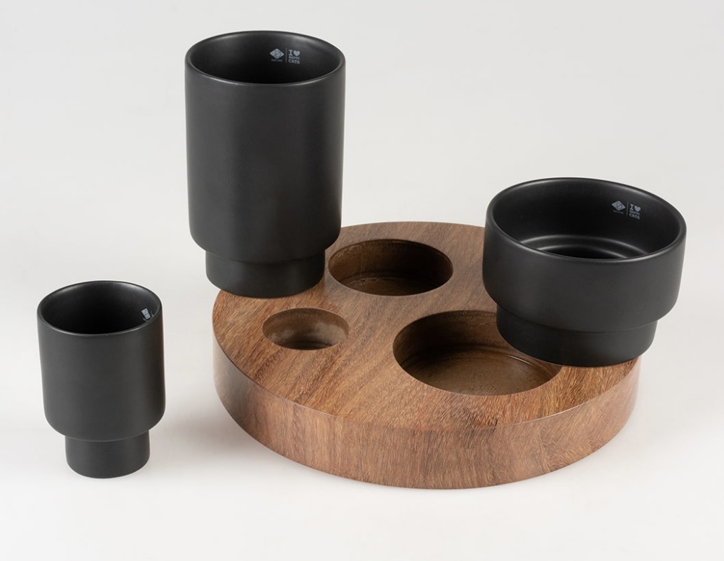Laat je kat op een speelse manier trager eten en voorkom gezondheidsproblemen met deze slow down verrijkingskom. Ontworpen in samenwerking met kattengederagstherapeut Anneleen Bru. Deze mooie design verrijkingskom met 3 kommen van verschillende hoogtes stimuleert je kat om op een speelse manier te eten en doet haar ook trager eten, wat goed is voor haar lichamelijk en geestelijk welzijn. Het voedsel op meerdere plaatsen in huis aanbieden met verfijnde kommen zoals de IGGY is goed voor je kat en voorkomt verveling, stress en overgewicht. De stijlvolle artisanale keramische kommen staan op een houten schijf die hen stabiel houdt wanneer je kat haar poten gebruikt bij het eten.