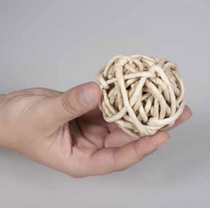 Onze maïsbal leidt zijn eigen leven :) Hij dartelt en stuitert over de vloer met een speelse onvoorspelbaarheid. Dit maakt hem voor katten bijzonder interessant.