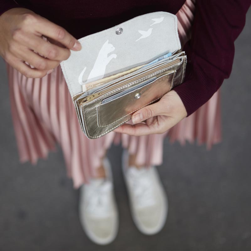 Zoek je een overzichtelijke golden leren portemonnee voor dames die jaren meegaat en waar je veel in kwijt kunt? Dan is jouw chase nu voorbij. De Cat Chase portemonnee medium heeft aan de binnenkant een apart ritsvak voor kleingeld, twee grote vakken voor je briefgeld, je bonnetjes of je telefoon én er zitten ook nog kleine vakjes in voor pasfoto’s of visitekaartjes.