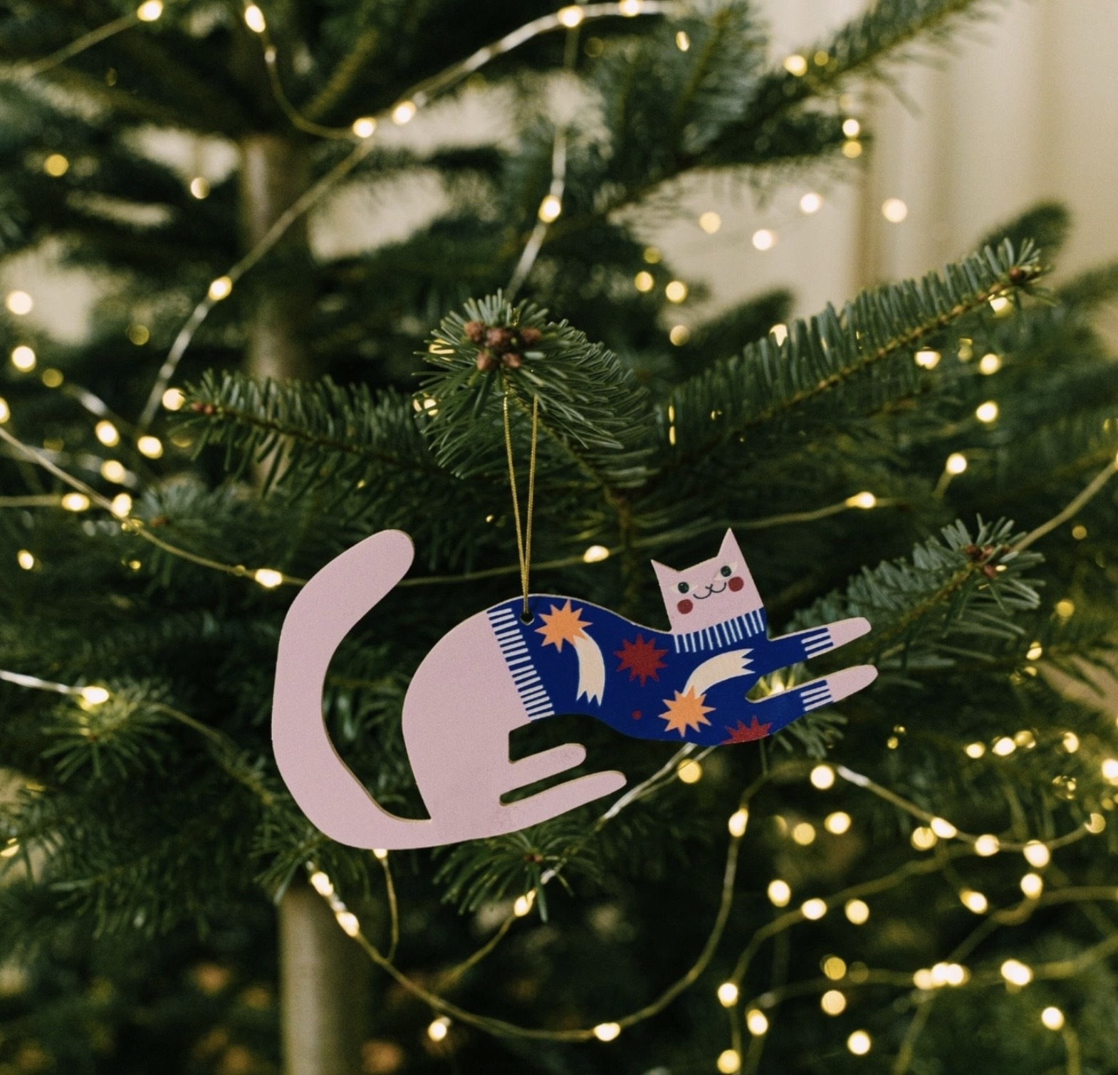 Geef je kerstboom een unieke uitstraling met deze fraaie kersthanger. Perfect voor een speelse touch aan je feestdecoratie. Gemaakt van bedrukt berkenmultiplex, straalt hij warmte en gezelligheid uit. Hang hem in je kerstboom of geef hem als geschenk een een kattenliefhebber.