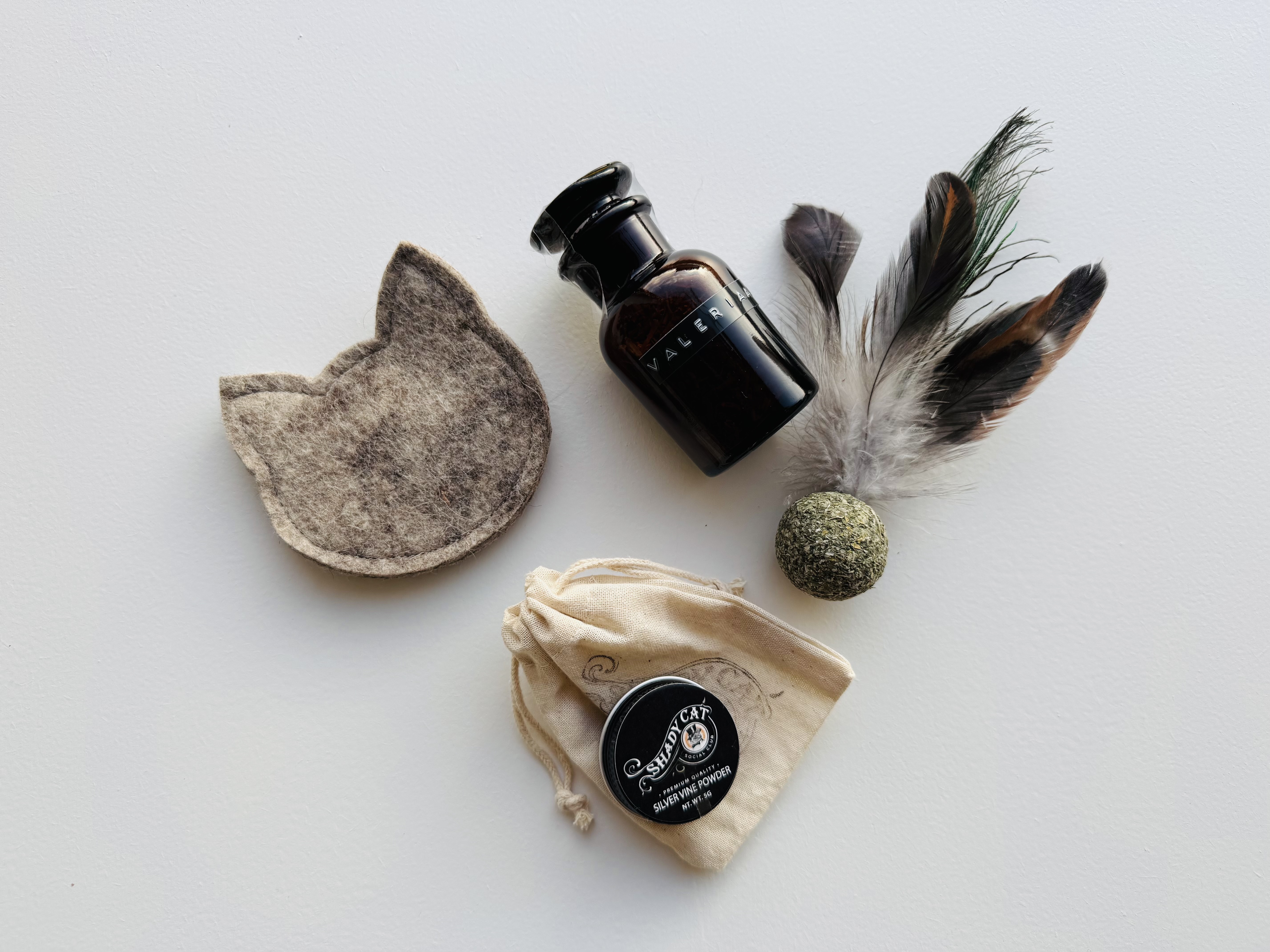 Pure verwennerij voor katten die houden van geurige sensaties. Deze mooie geschenkdoos bevat 1 kattenkop met kattenkruid, 1 flesje valeriaan. 1 blikje silver vine en 1 pluimbal met kattenkruid. Euforie gegarandeerd!