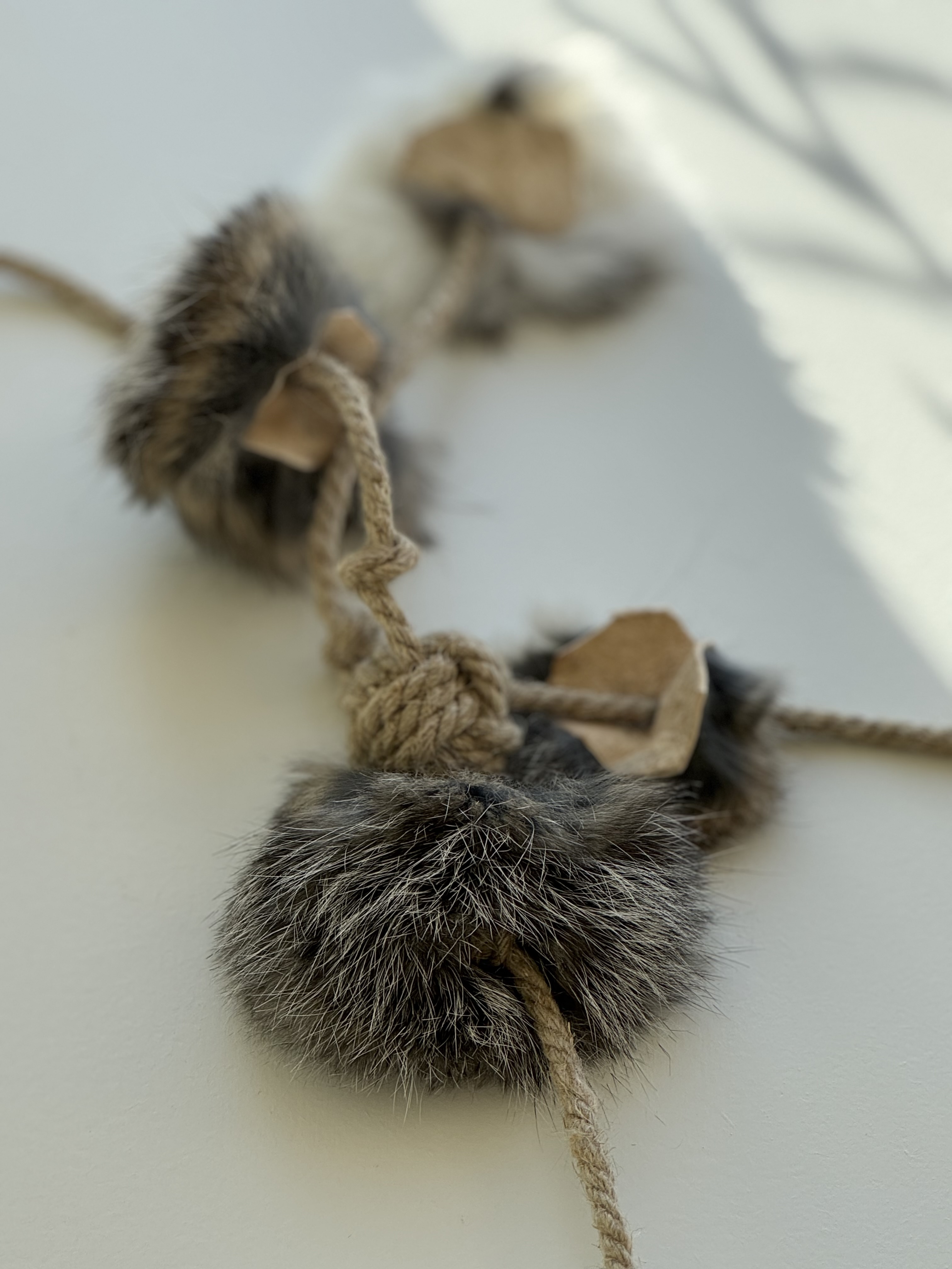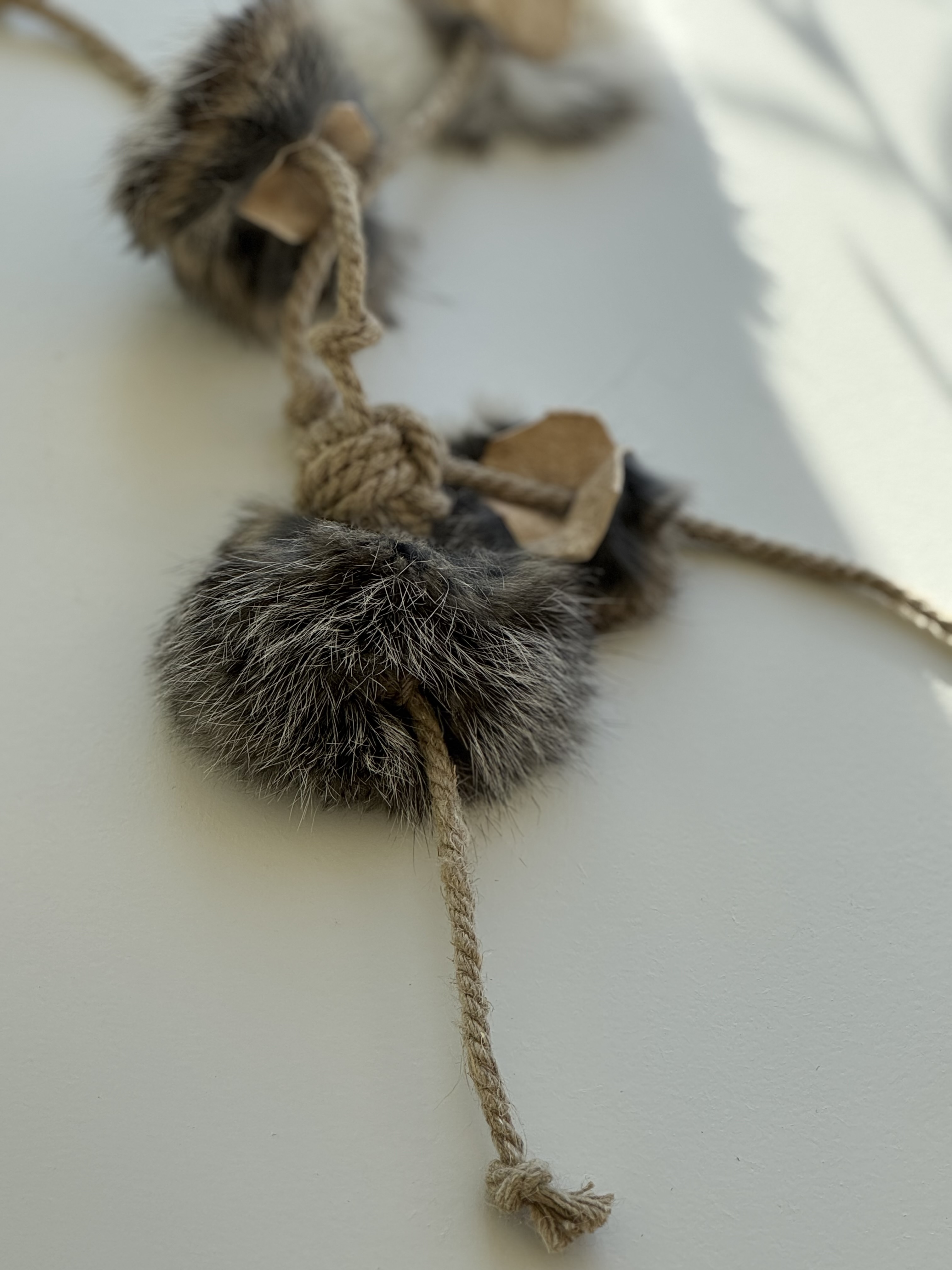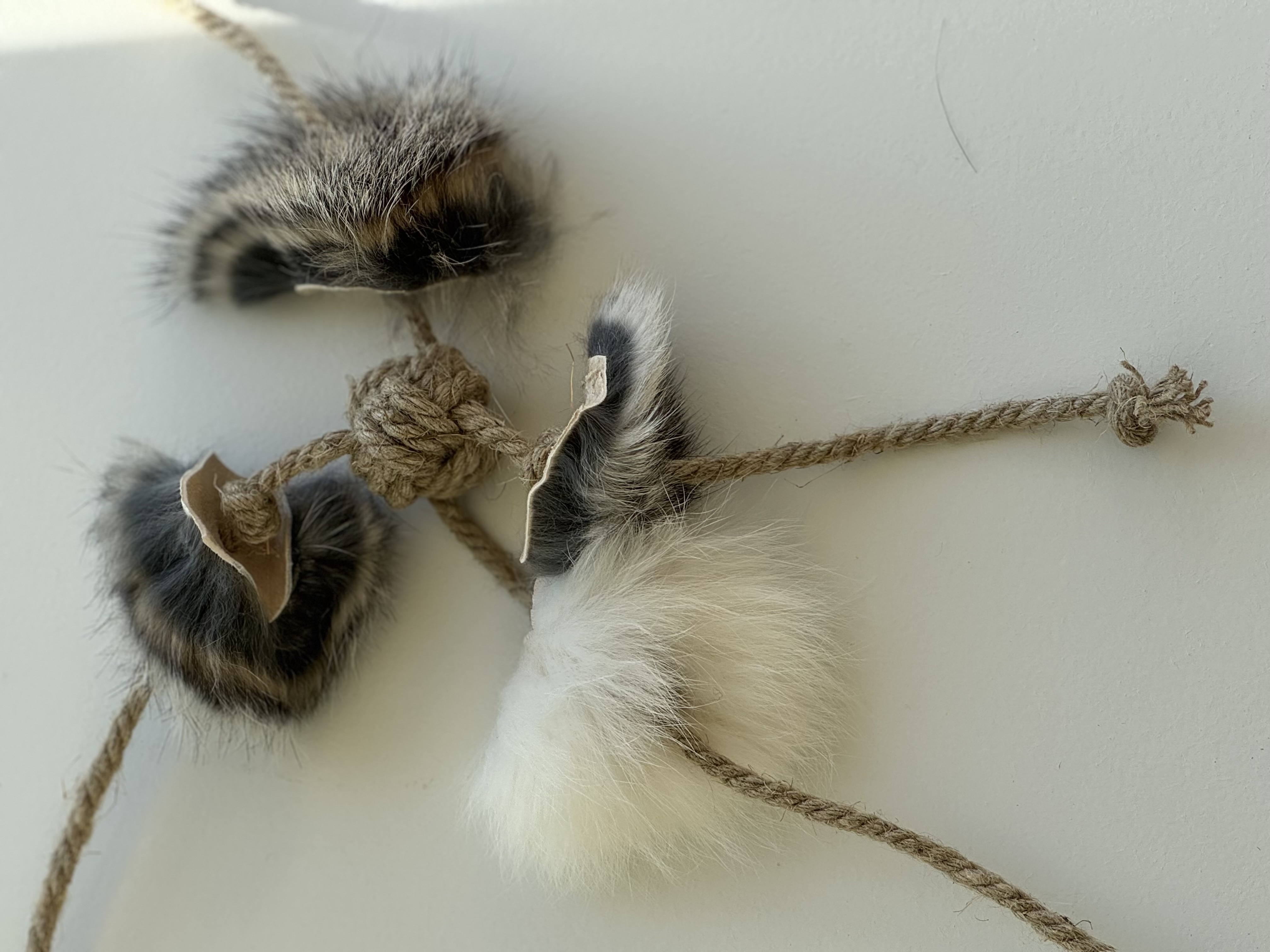 Katten houden echt van de geur van onbehandelde hennepvezels. Het speelgoed is 100% natuurlijke hennepvezel, inclusief het touwtje dat wordt gebruikt om het vlechtwerk samen te zetten.