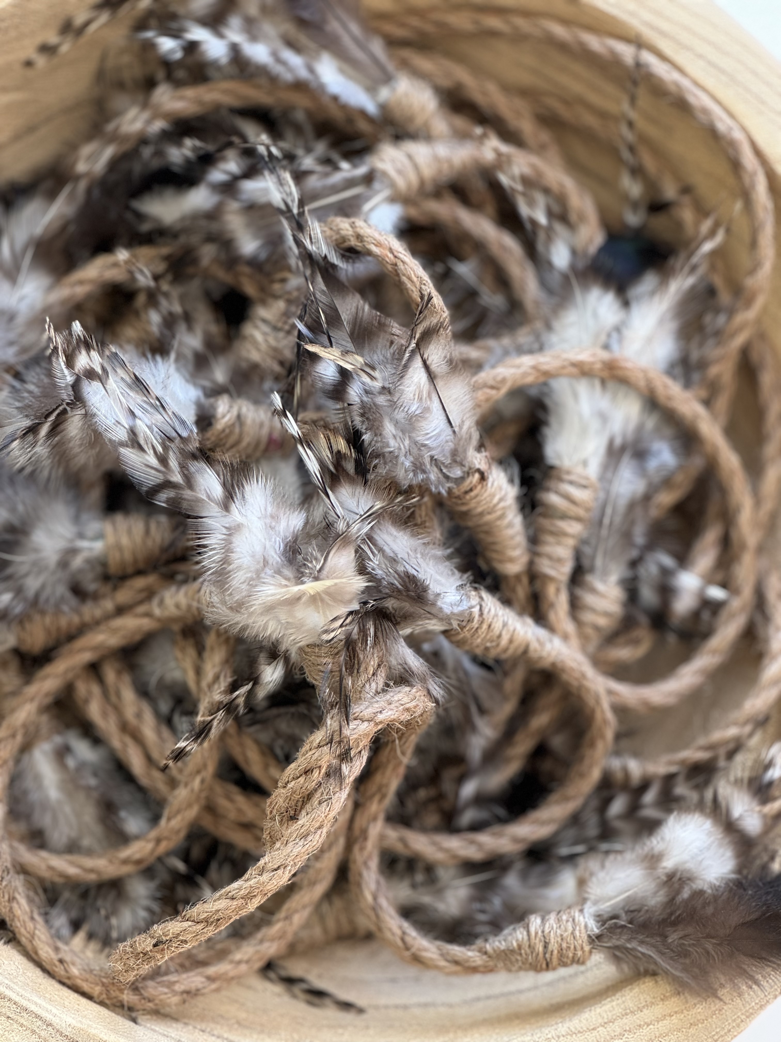 - natuurlijke kippenveren en katoenen touw