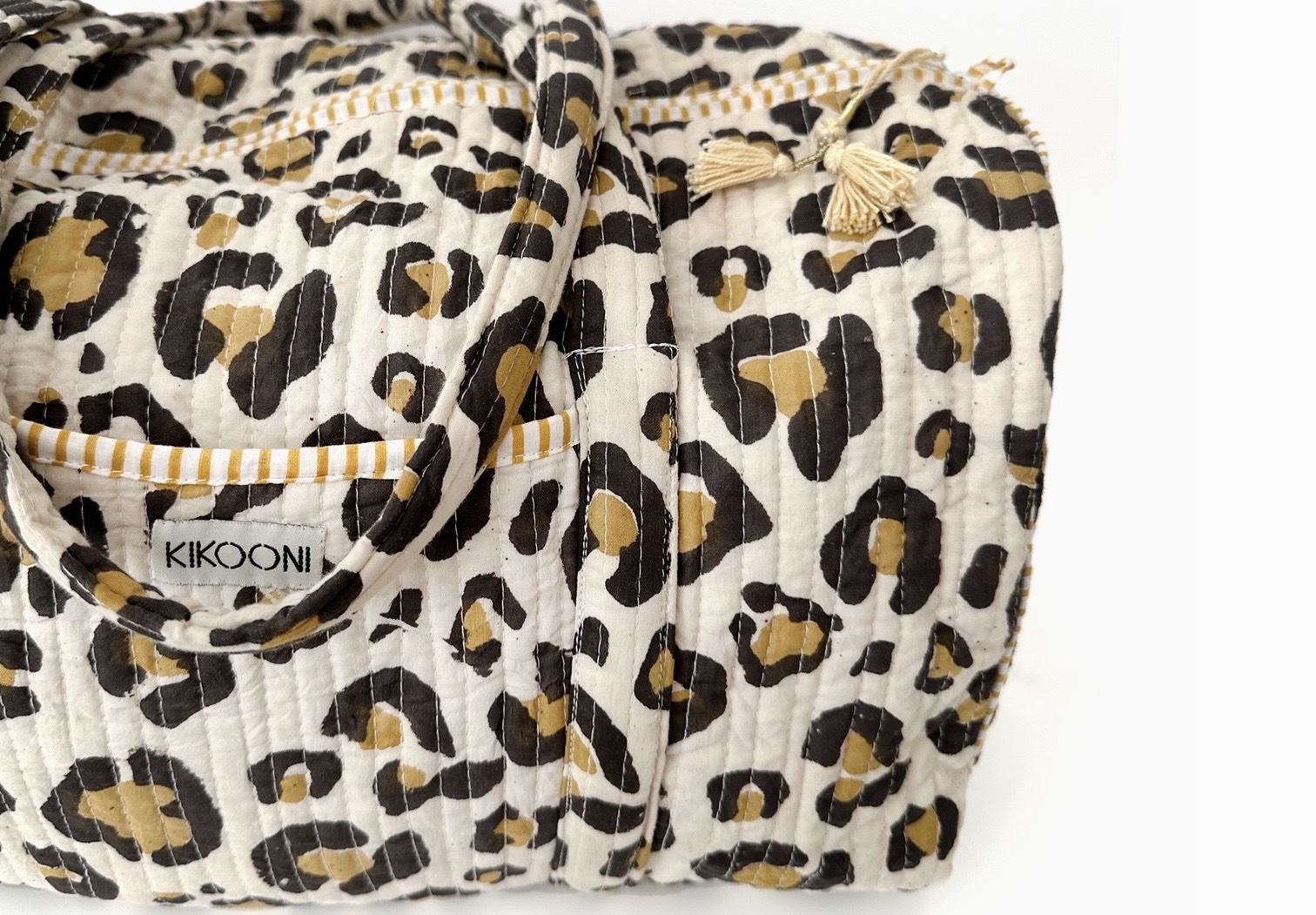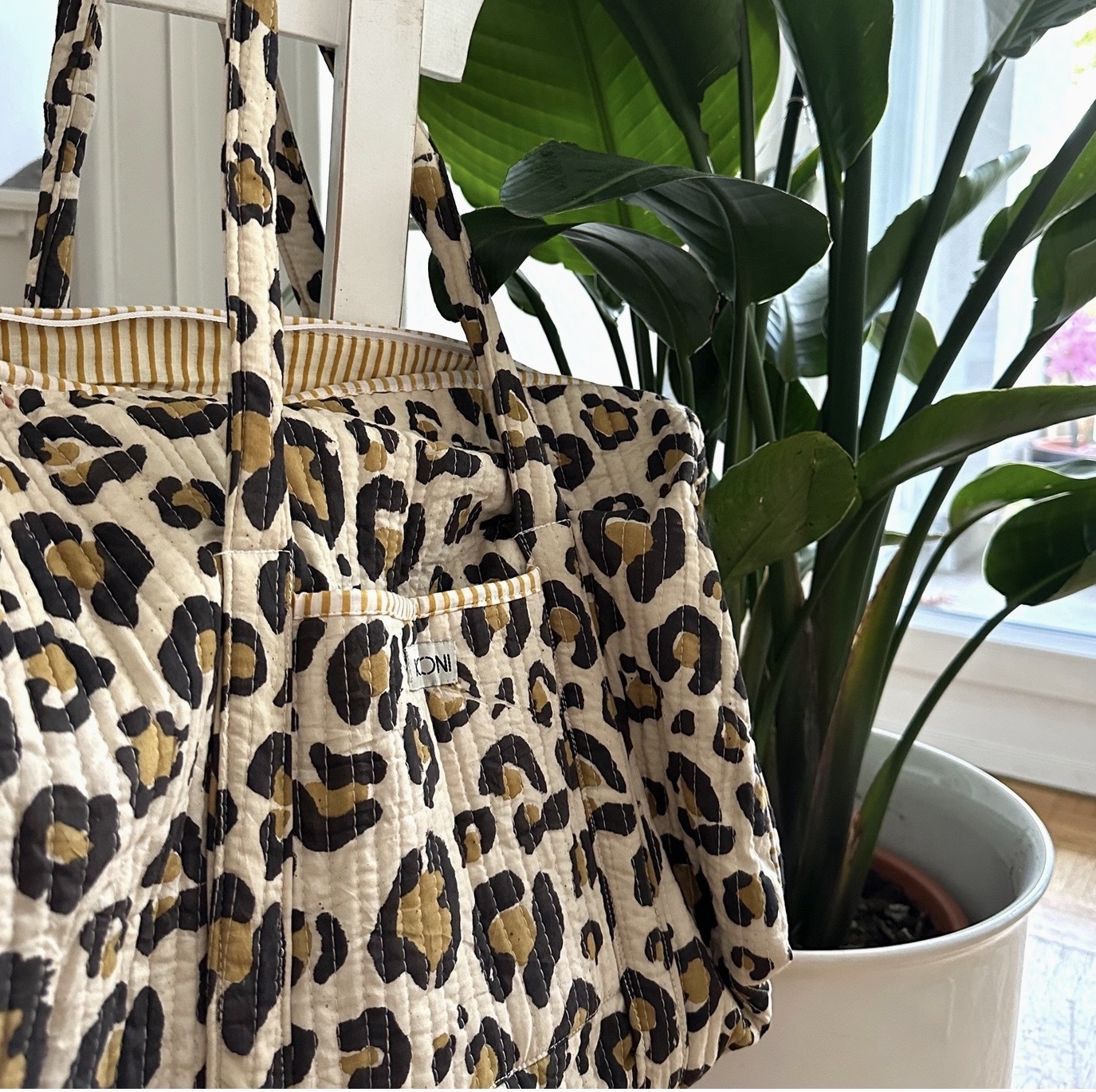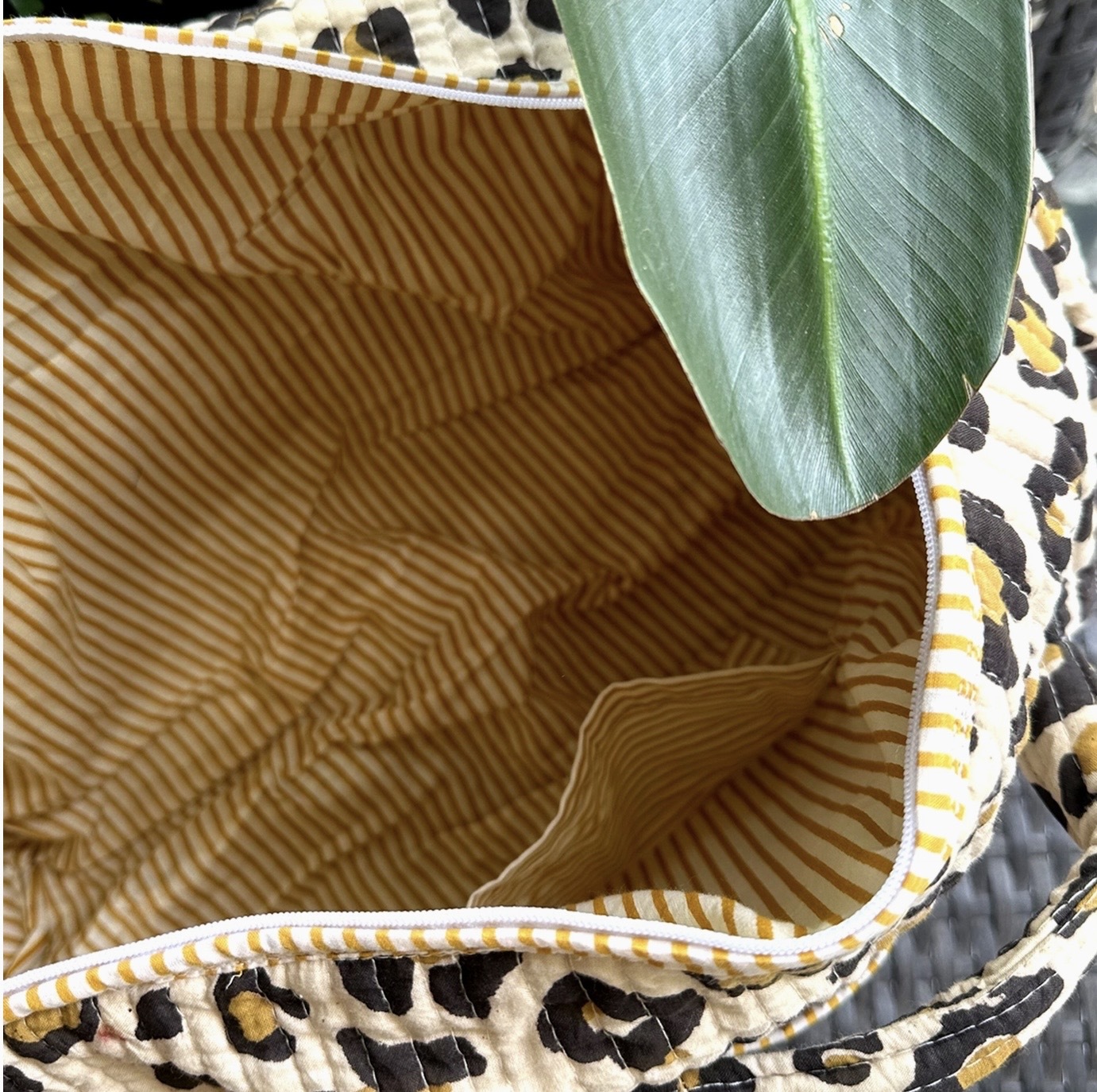 Deze speelse handgemaakte katoenen tas kan dienen als sporttas, strandtas of weekendtas - simpelweg jouw favoriete tas voor alles. Er past makkelijk een handdoek, slippers, een drinkfles en een setje extra kleding in. Het mooiste is dat deze tas een uniek exemplaar is, met liefde handgemaakt.