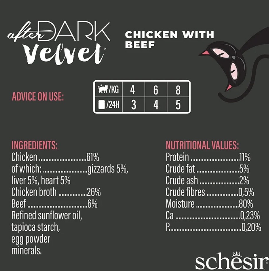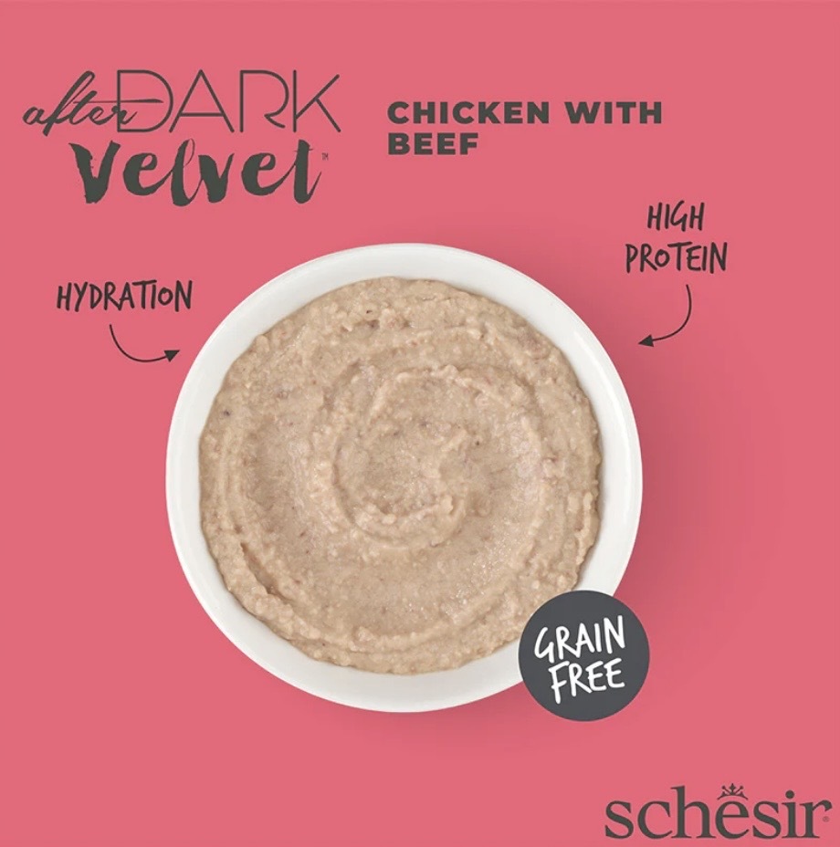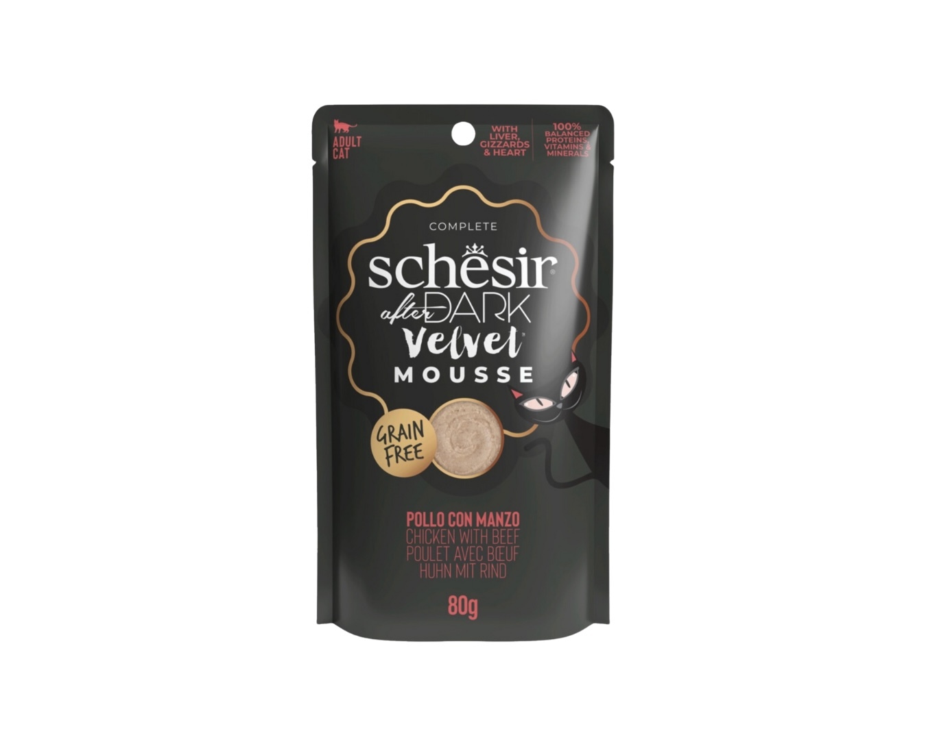 Schesir After Dark Velvet mousse heeft zachte en gladde moussestructuur die ervoor zorgt dat kauwen makkelijker gaat en de maaltijd geen strijd wordt.