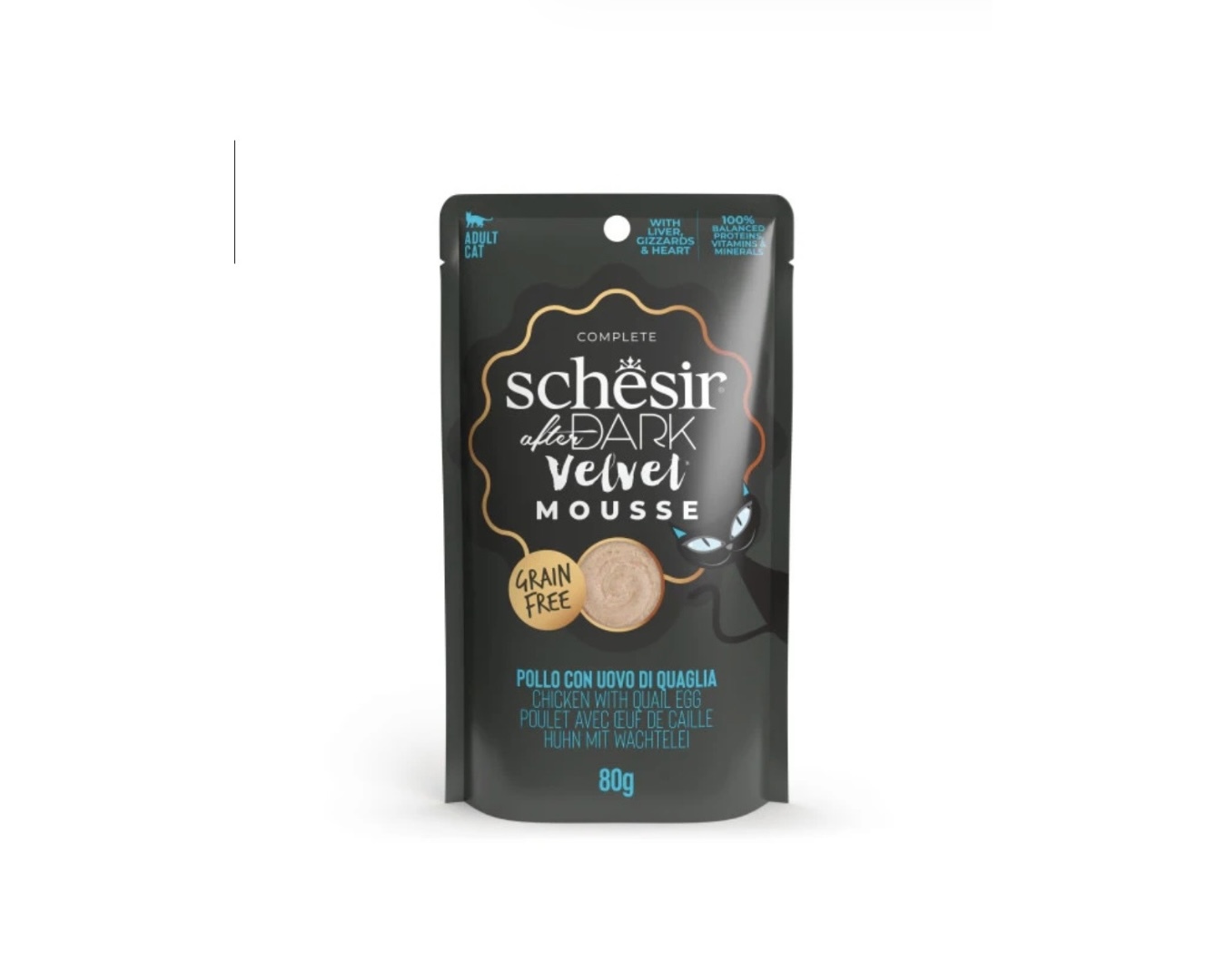 Schesir After Dark Velvet mousse heeft zachte en gladde moussestructuur die ervoor zorgt dat kauwen makkelijker gaat en de maaltijd geen strijd wordt.