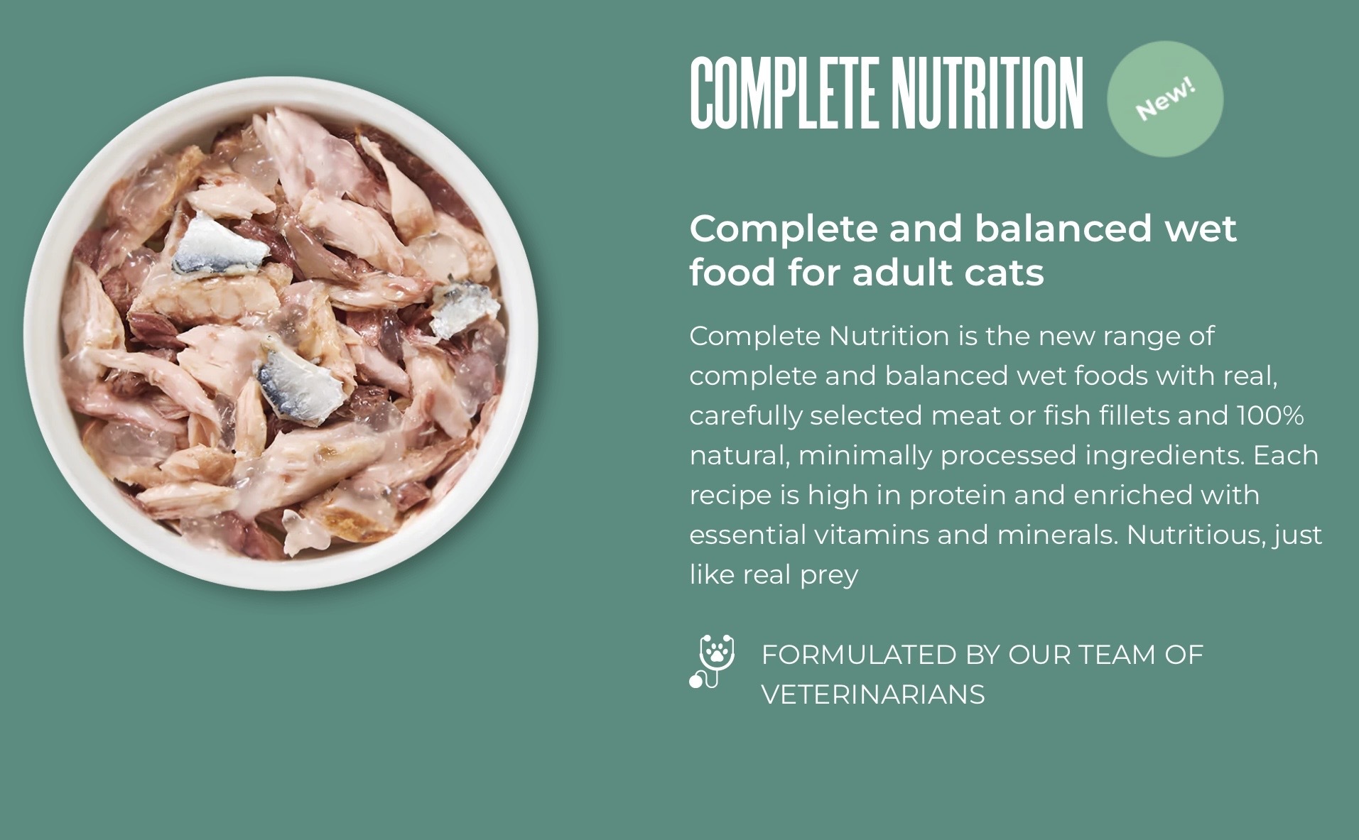 - volledig en uitgebalanceerde natvoeding voor volwassen katten