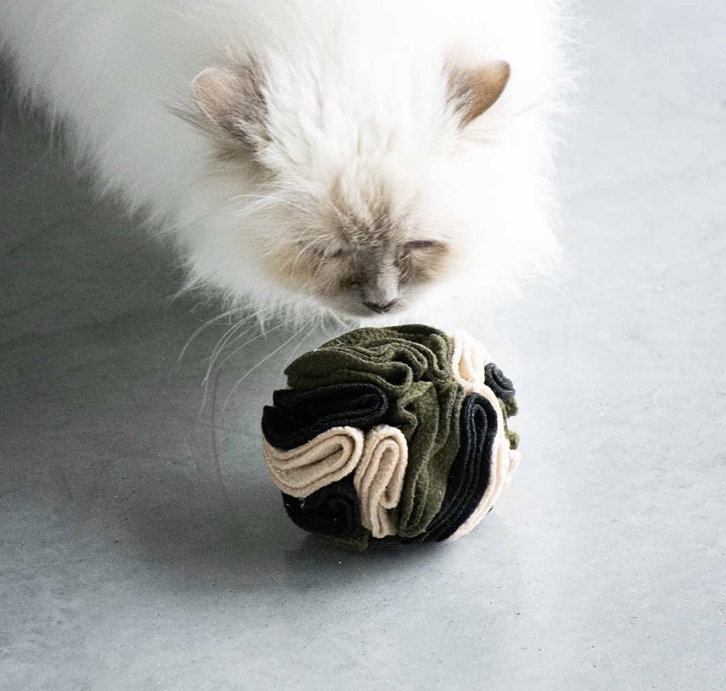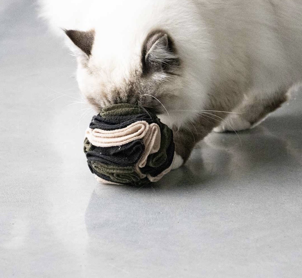 Verstop kattenbrokjes of snoepjes tussen de laagjes vilt, zo wordt het een spannende uitdaging elke keer ze er mee speelt.