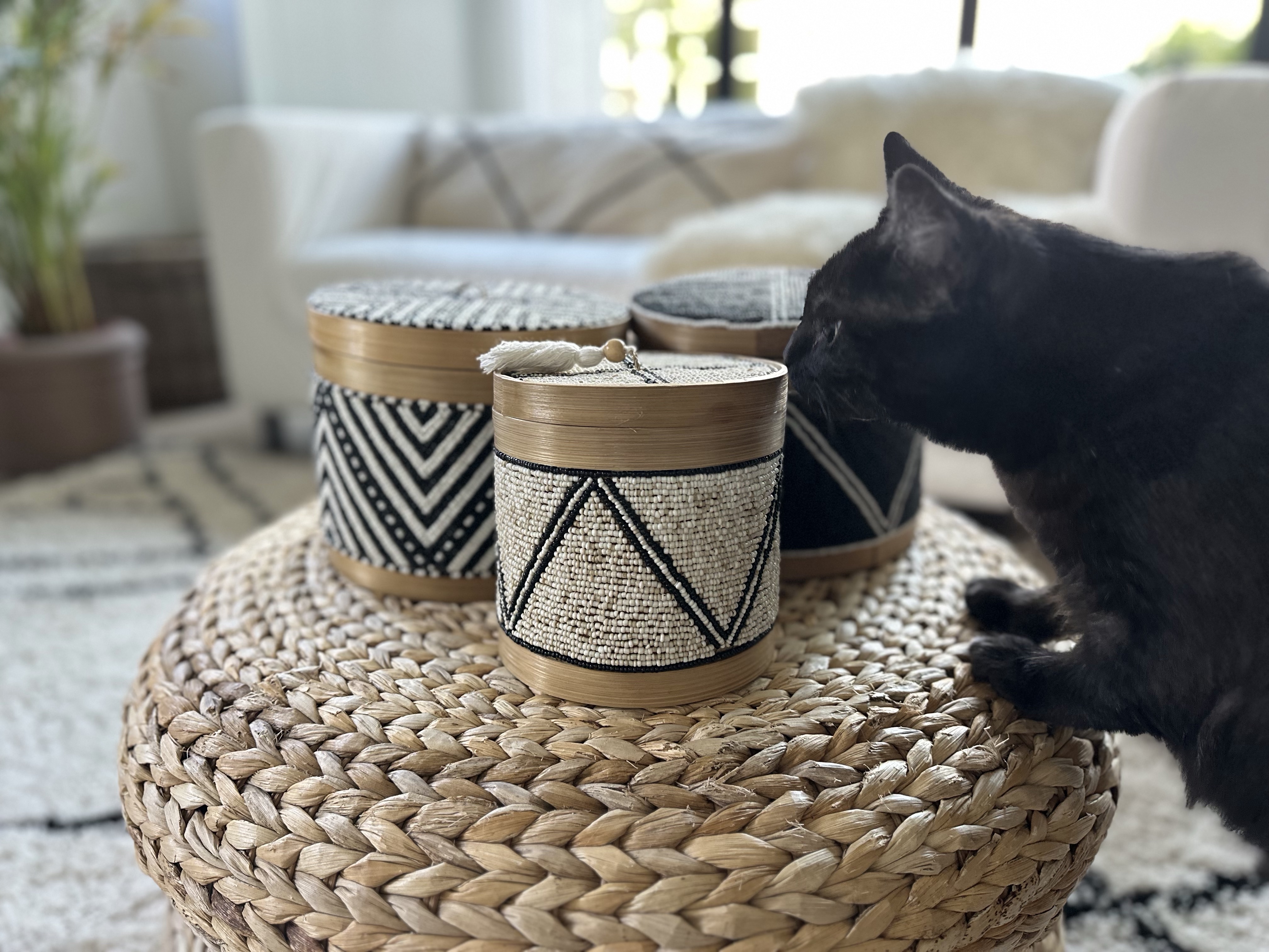 Kattenbenodigdheden hoeven geen stijlbreuk te zijn met jouw interieur. Deze decoratieve mand is een echte eyecatcher. Hiermee kan je een stijlvolle én praktische omgeving creëren voor zowel jou als jouw kat. Je kan er het speelgoed netjes in opbergen wanneer het niet gebruikt wordt.